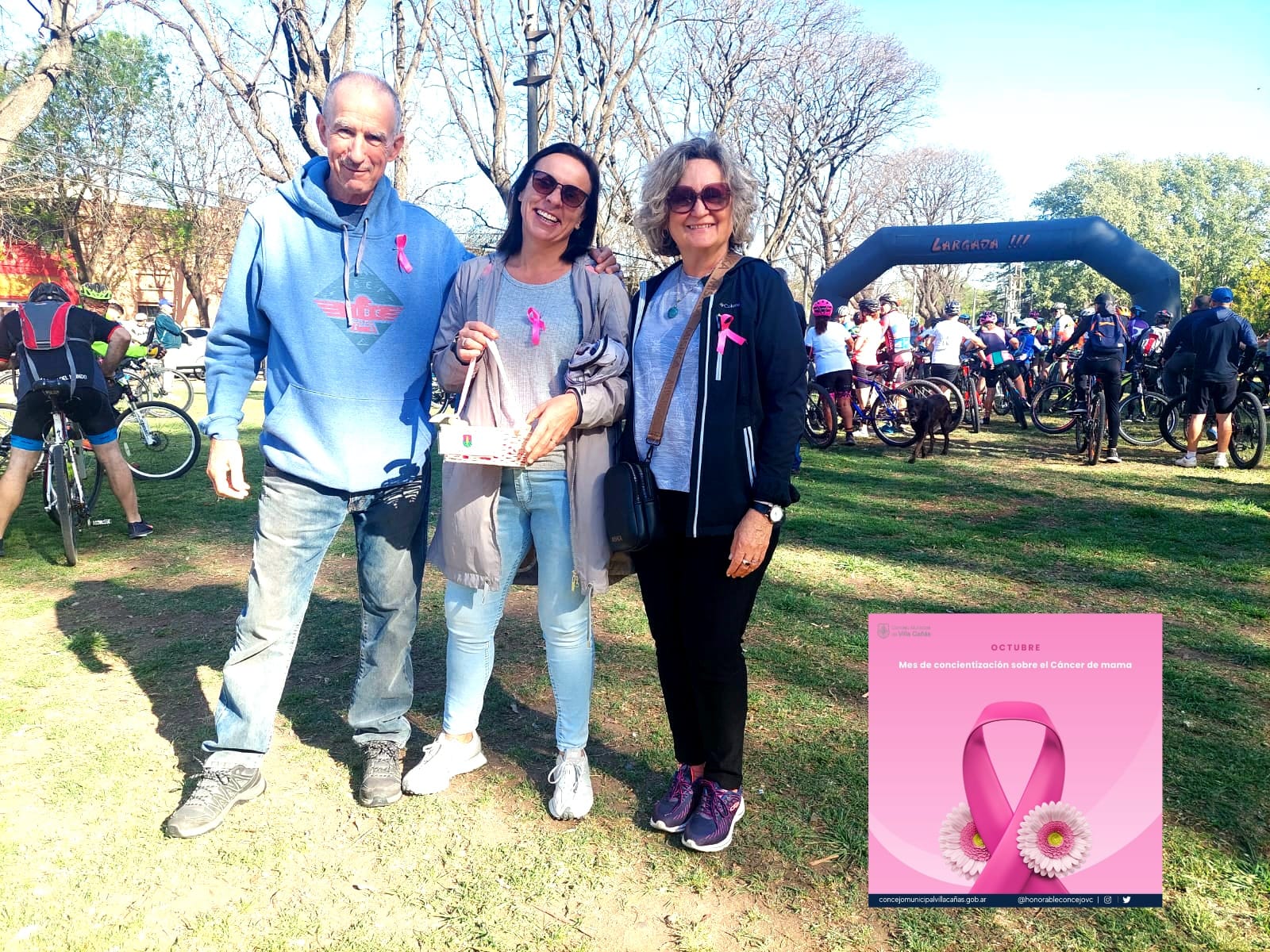 El domingo 8 de Octubre, se llevó a cabo cicloturismo y desde el Concejo repartimos lazos rosa en adhesión a Octubre rosa.